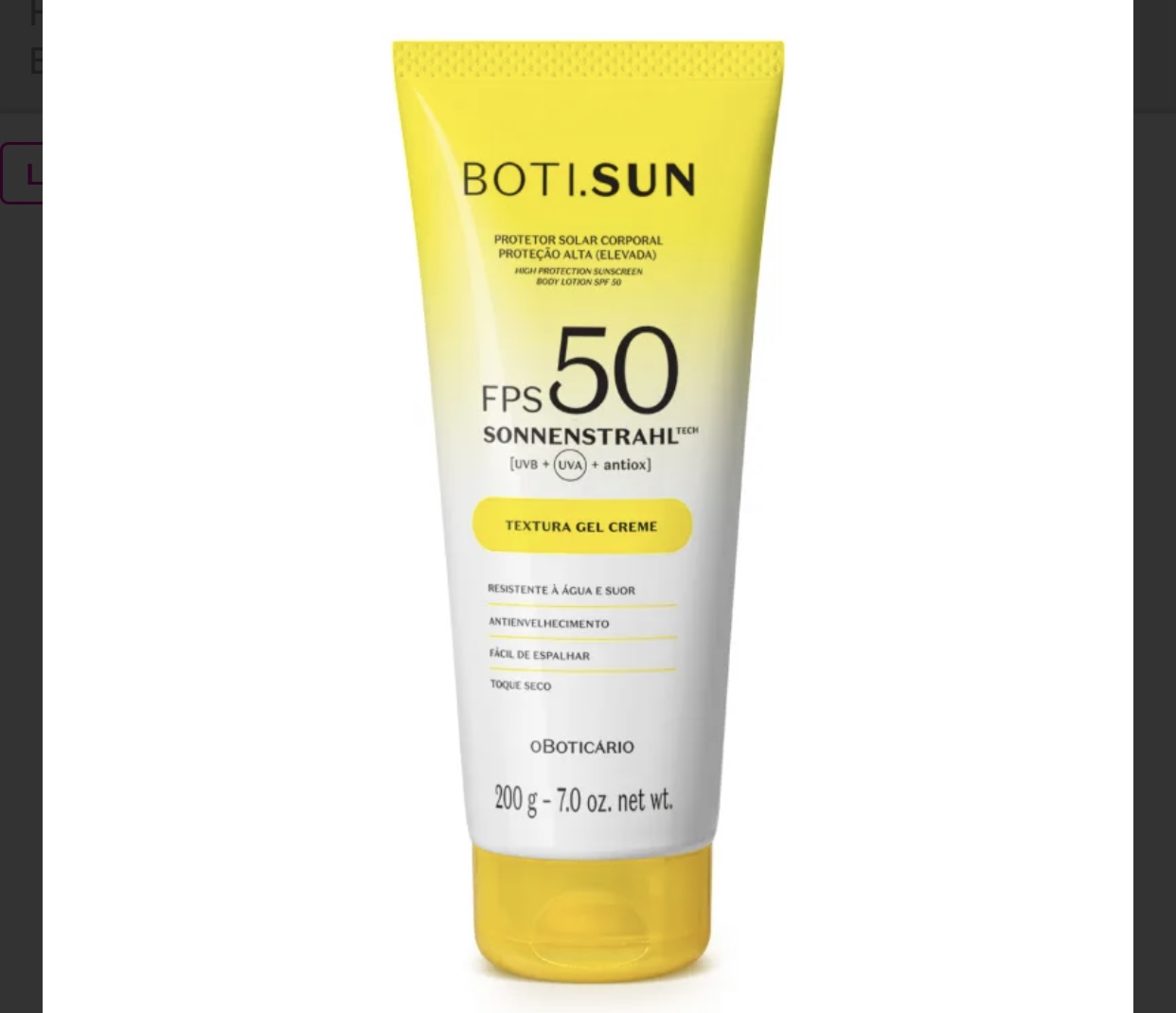 Protetor Solar Corporal e Pós Sol Protetor Solar Corporal Gel Creme FPS50 BOTI.SUN 200g R$ 109,90 O preço original era: R$ 109,90.R$ 81,90O preço atual é: R$ 81,90. Adicionar ao carrinho