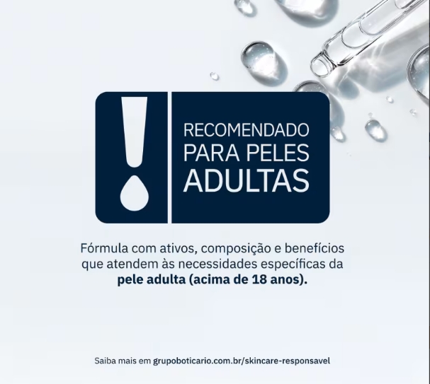 Recomendado para peles adultas: fórmula com ativos, composição e benefícios que atendem às necessidades específicas da pele adulta (acima de 18 anos).
