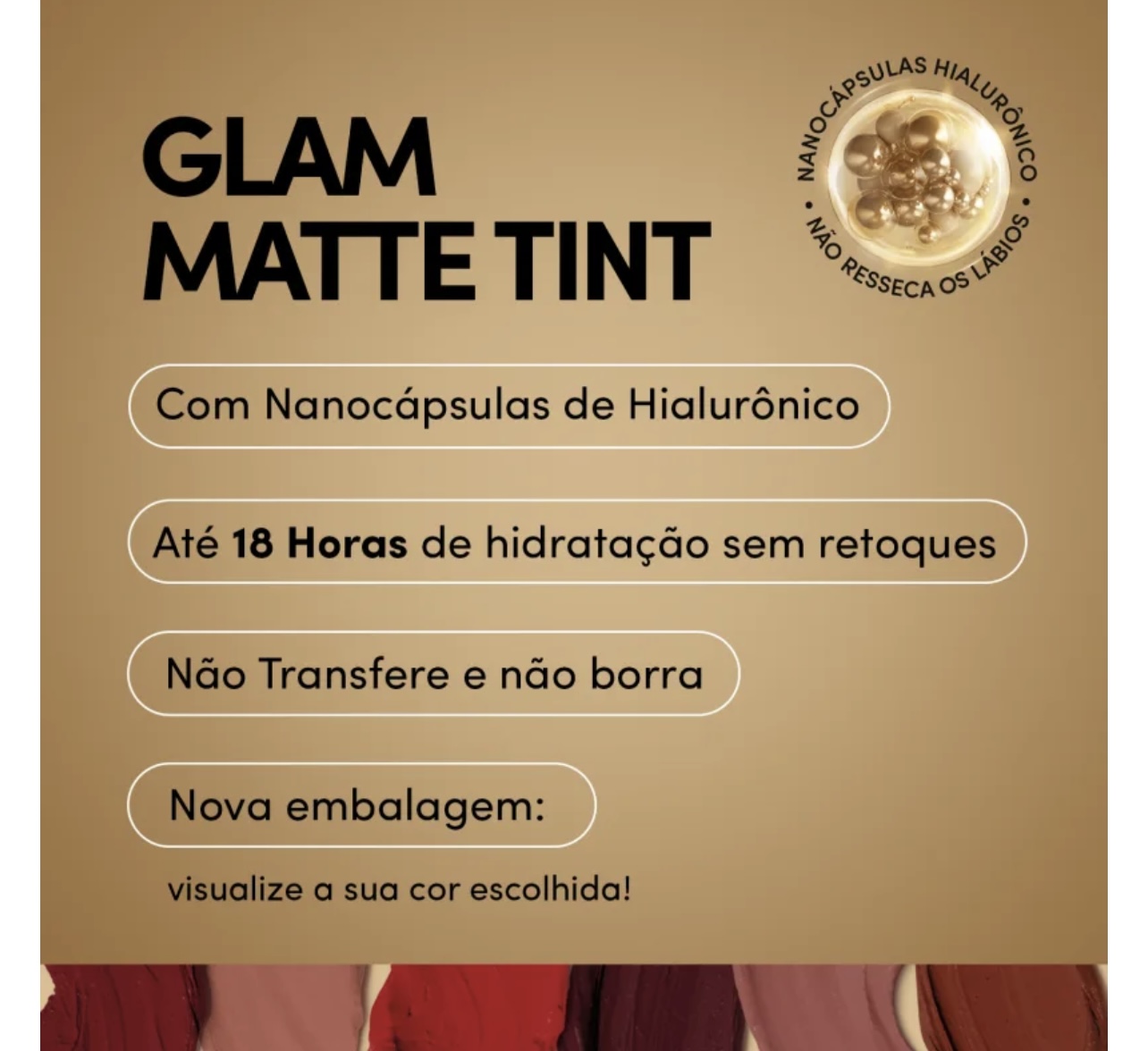 Batom Líquido Vermelho Radiante Glam Matte Tint 4g