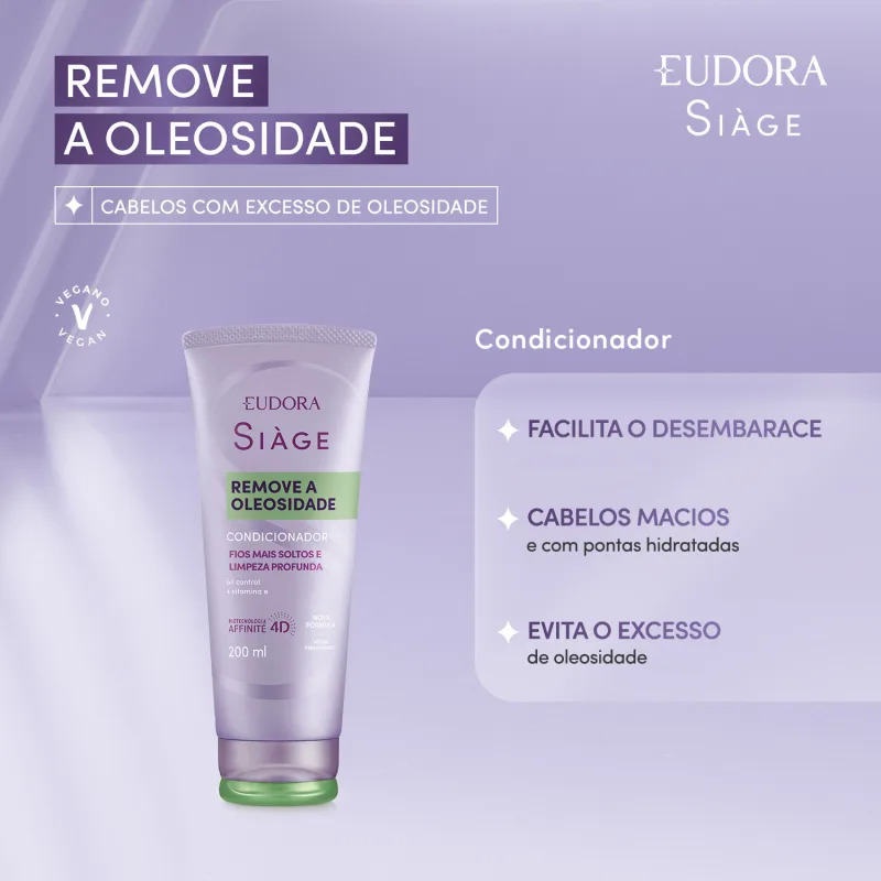 Condicionador Siàge Remove A Oleosidade foi desenvolvido para controlar a oleosidade dos cabelos.