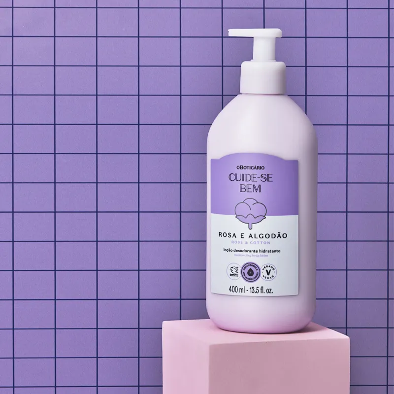 Esta loção corporal tem textura cremosa e toque aveludado com Manteiga de Karité e Glicerol, cuidando da sua pele enquanto a mantém perfumada com a fragrância delicada de Cuide-se Bem Rosa e Algodão. Confira mais benefícios: