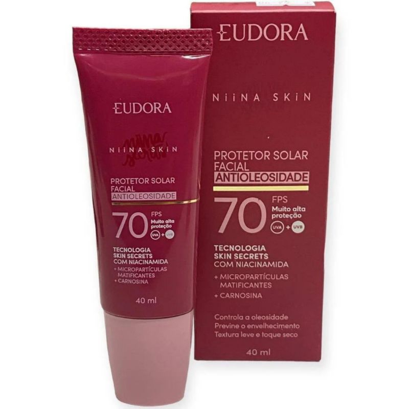 Co-criada com Niina Secrets e pensado para seus milhões de seguidores, o Protetor Solar Facial Antioleosidade Niina Skin FPS 70 é o item de cuidados que faltava para o seu dia a dia. A exclusiva tecnologia Skin Secrets com Niacinamida, desenvolvida para atender as necessidades essenciais da pele, se une a uma alta proteção solar FPS70, para protegê-la dos efeitos nocivos da exposição solar.